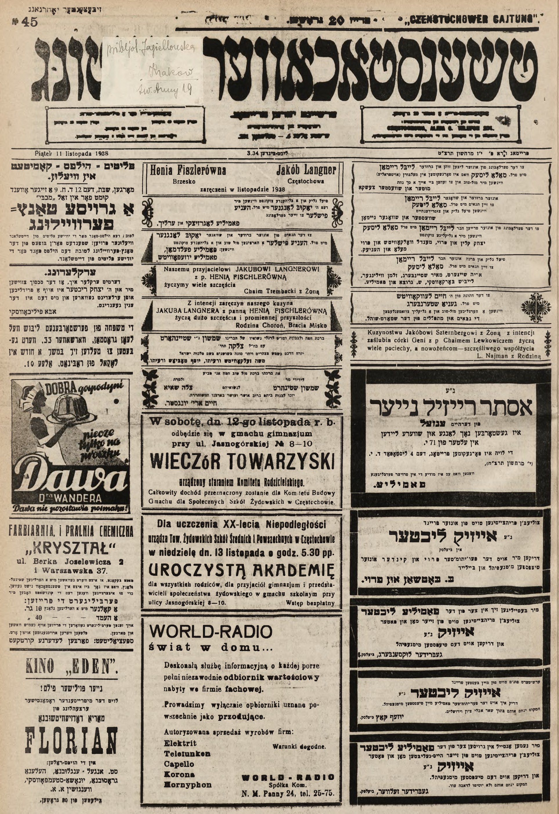 | Divorce of Abraham Menachem Najer - Burial place is unknown, the tombstone was not found in the mapping made by the Gidonim and Paszkowski. The listing according to the obituary in the newspaper. |